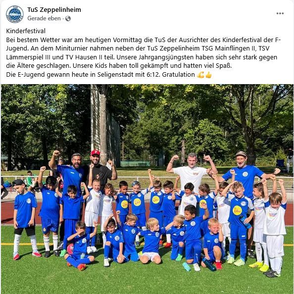 Wir appellieren an euch, euch aktiv einzubringen und Teil dieser spannenden Entwicklung der TuS Zeppelinheim zu sein. Wir benötigen Helferinnen und Helfer für Veranstaltungen, engagierte Betreuer für unsere Jugendmannschaften, kreative Ideenbringer für neue Projekte und Menschen, die sich auf ihre eigene Art einbringen möchten. Egal ob ihr viel Zeit zur Verfügung habt oder nur gelegentlich helfen könnt - jeder Beitrag ist wertvoll und trägt zum Erfolg unseres Vereins bei.