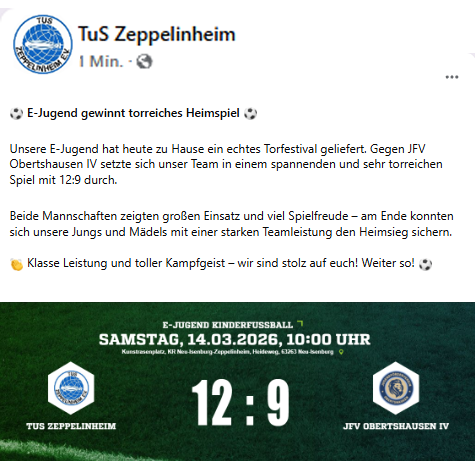 Wir appellieren an euch, euch aktiv einzubringen und Teil dieser spannenden Entwicklung der TuS Zeppelinheim zu sein. Wir benötigen Helferinnen und Helfer für Veranstaltungen, engagierte Betreuer für unsere Jugendmannschaften, kreative Ideenbringer für neue Projekte und Menschen, die sich auf ihre eigene Art einbringen möchten. Egal ob ihr viel Zeit zur Verfügung habt oder nur gelegentlich helfen könnt - jeder Beitrag ist wertvoll und trägt zum Erfolg unseres Vereins bei.